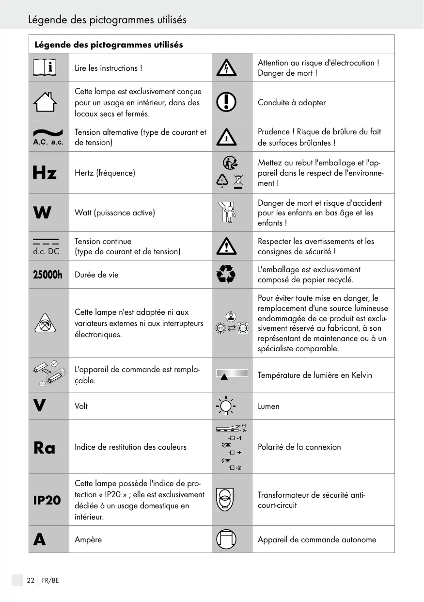 FR/BE Légende des pictogrammes utilisés / Introduction Légende des pictogrammes utilisés Milliampère