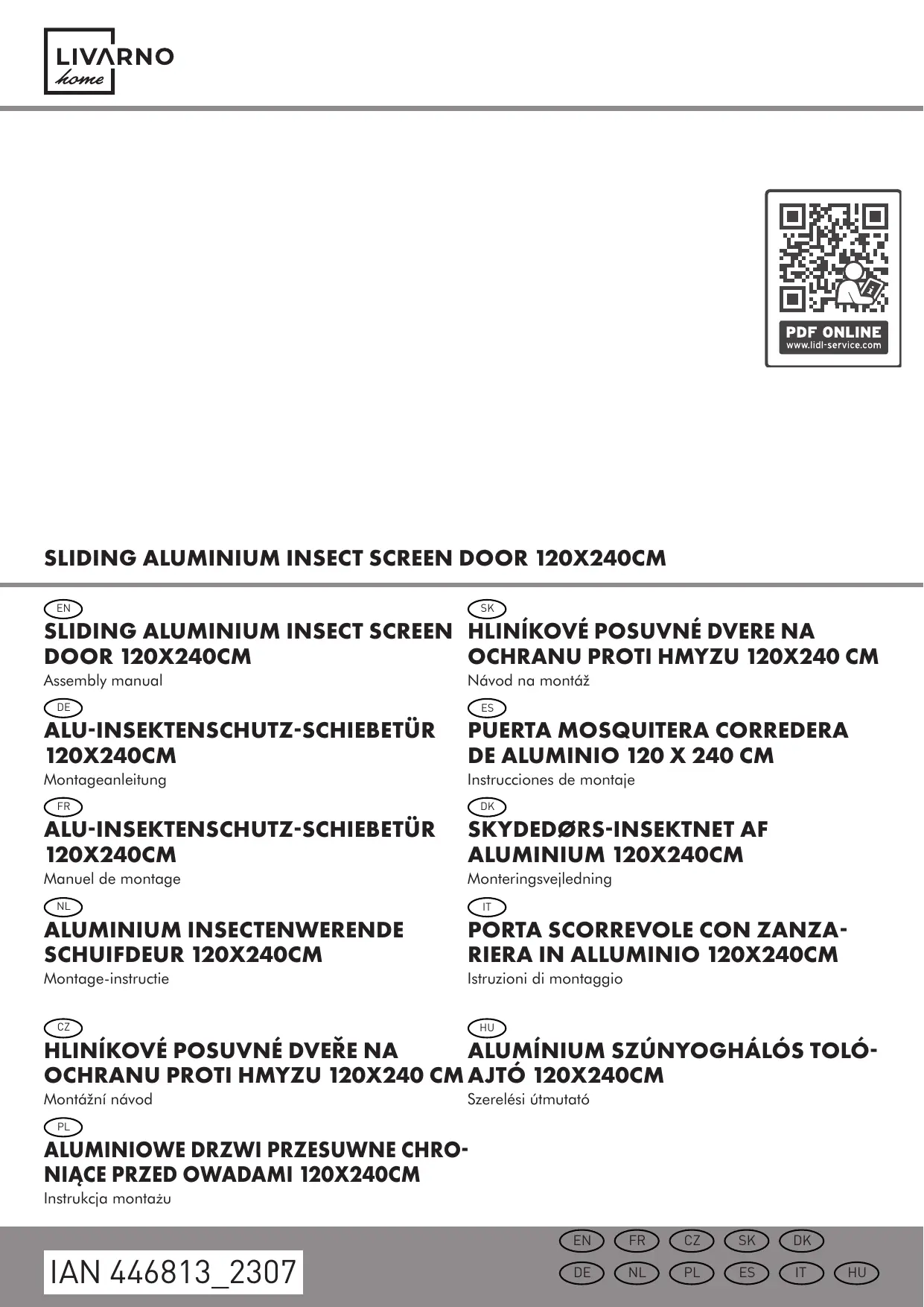 Porte-moustiquaire coulissante en aluminium, 120 x 240 cm - Produit de consommation LIVARNO - Notice d'utilisation et mode d'emploi gratuit