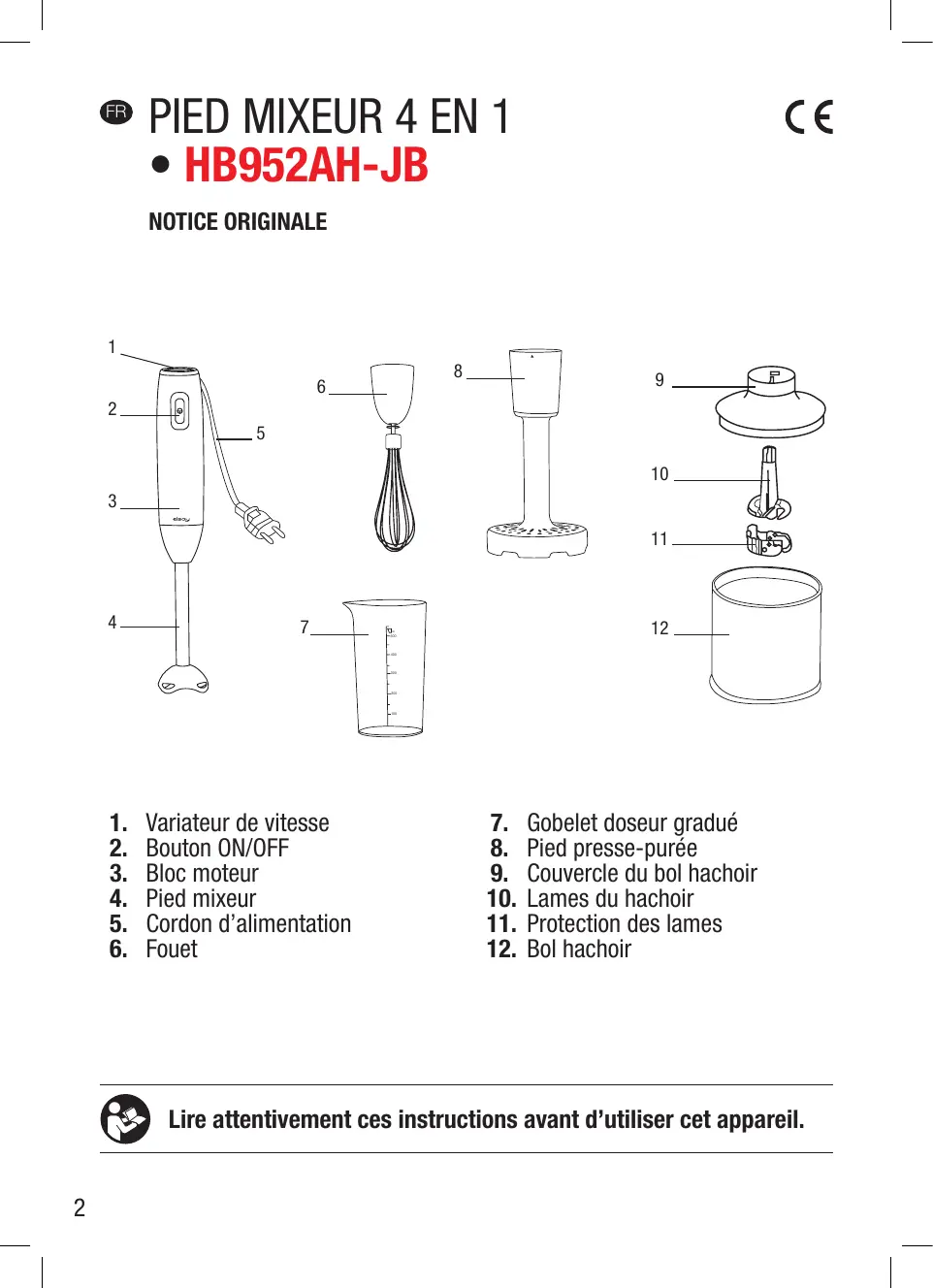 plongeant 4 en 1 - HB952AH-JB - Mixeur ELSAY - Notice d'utilisation et mode d'emploi gratuit