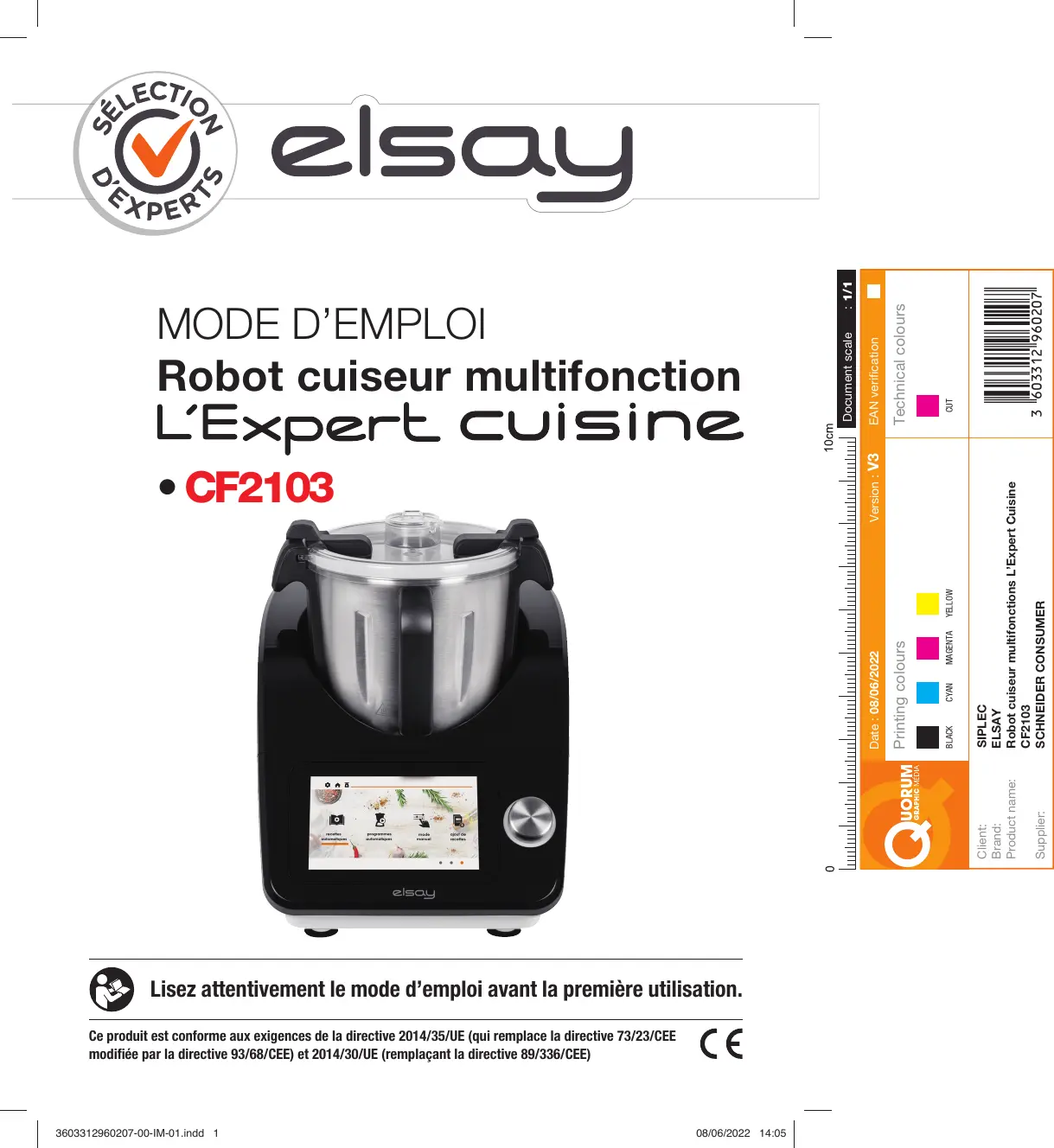 Retrouvez gratuitement la notice de l'appareil Robot multifonction connecté Elsay l'Expert cuisine ELSAY au format PDF.