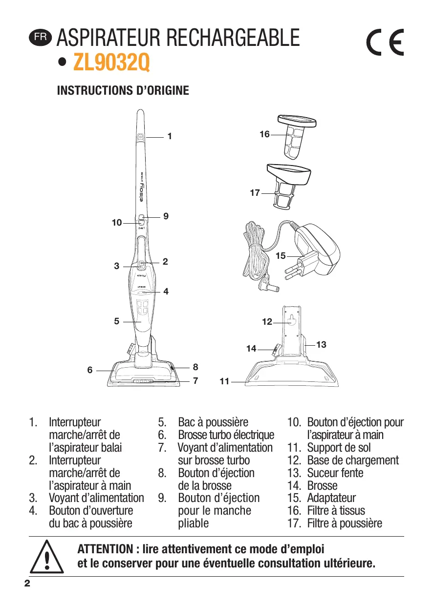 2 en 1 - ZL9032Q - Aspirateur balai ELSAY - Notice d'utilisation et mode d'emploi gratuit