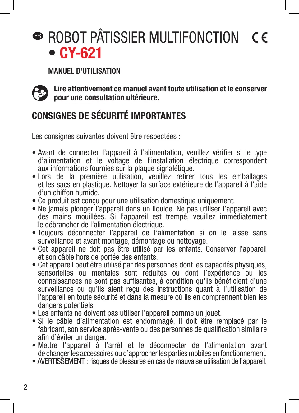 FR ROBOT PÂTISSIER MULTIFONCTION C€ • CY-621