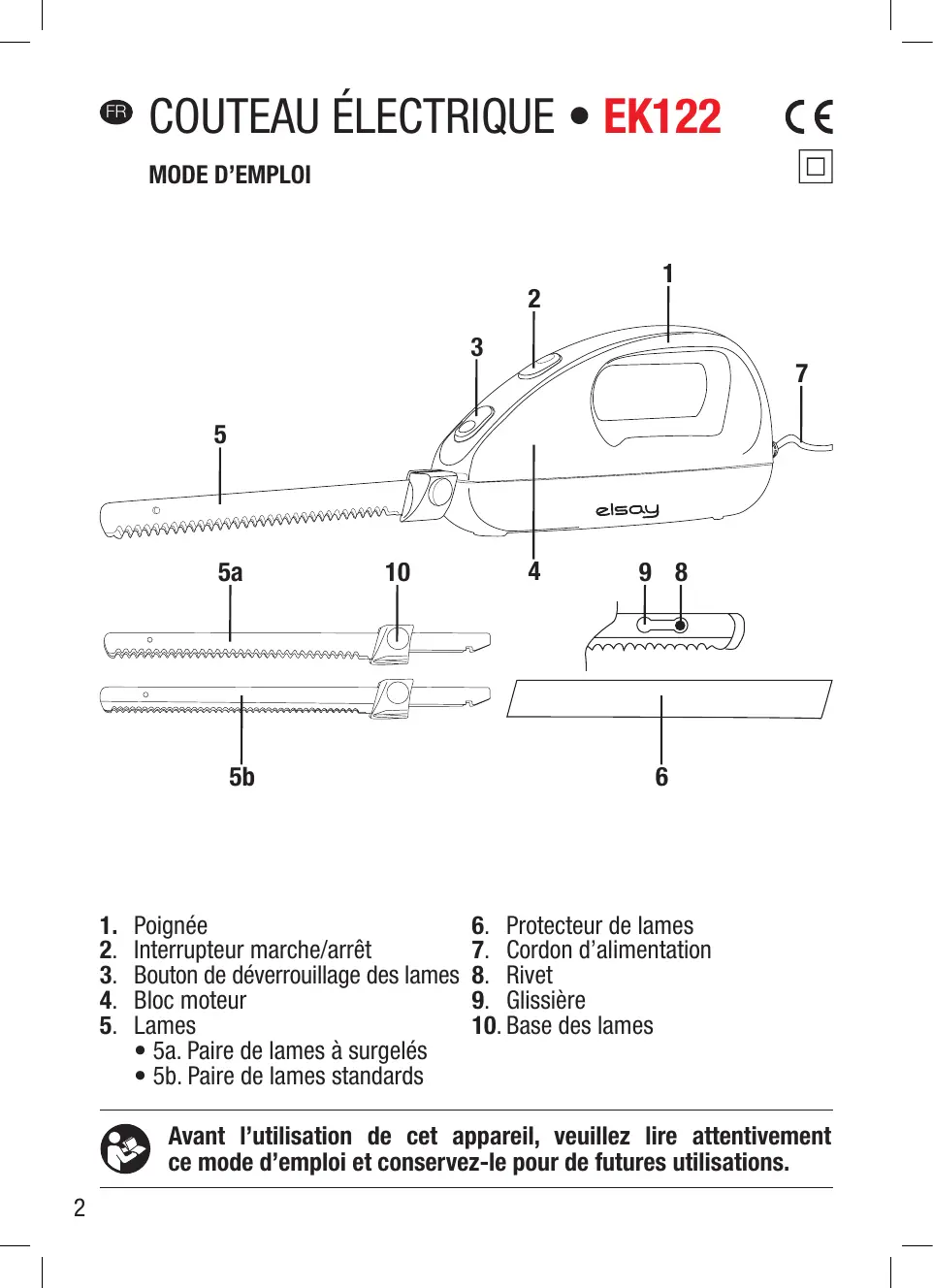 EK122 - Couteau électrique ELSAY - Notice d'utilisation et mode d'emploi gratuit