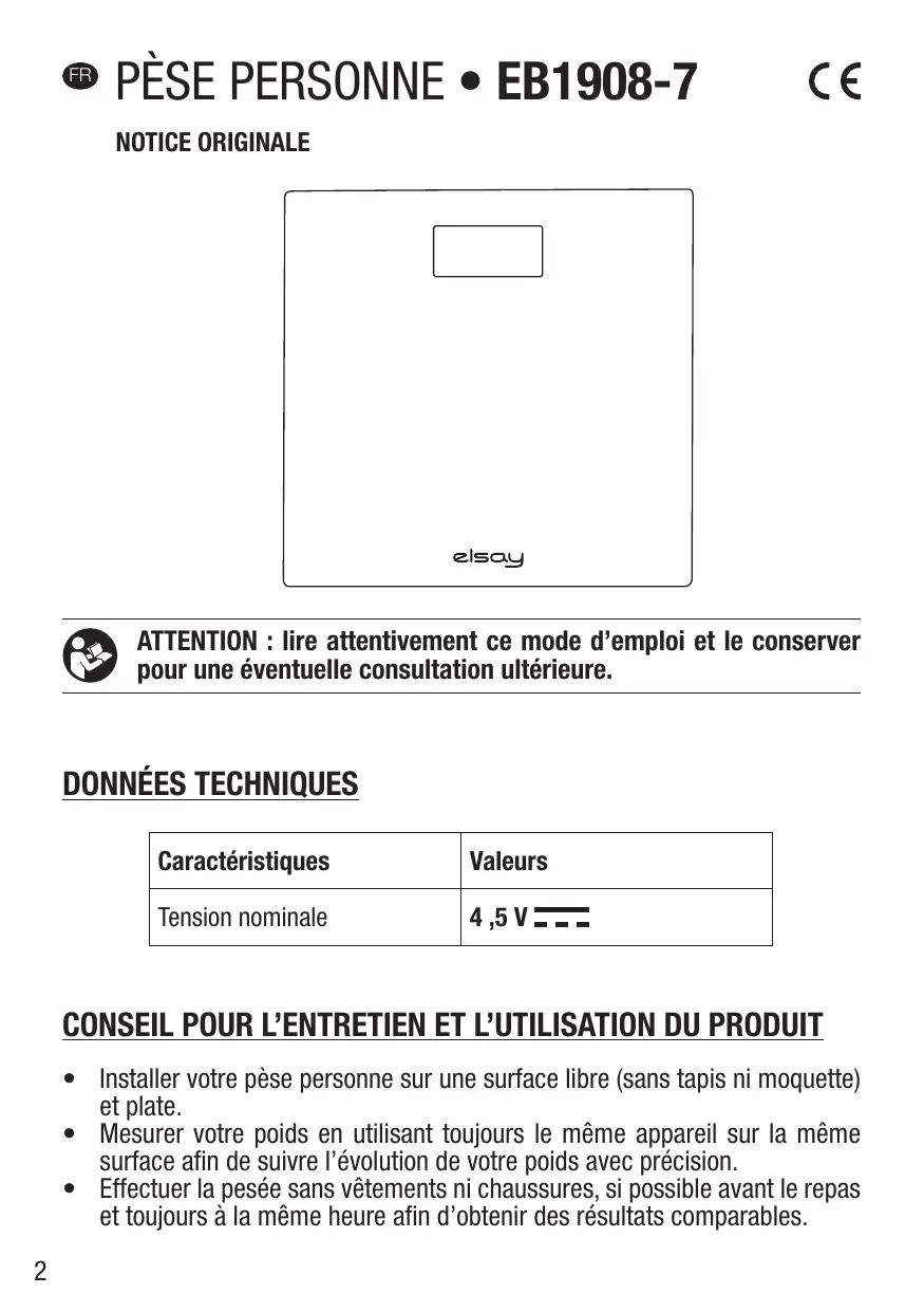 électronique - EB1908-7 - Pèse-personne ELSAY - Notice d'utilisation et mode d'emploi gratuit
