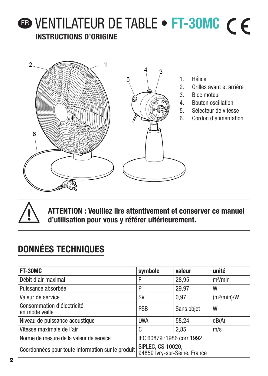 | Coordonnées pour toute information sur le produit | SIPLEC, CS 10020, 94859 Ivry-sur-Seine, France | ||