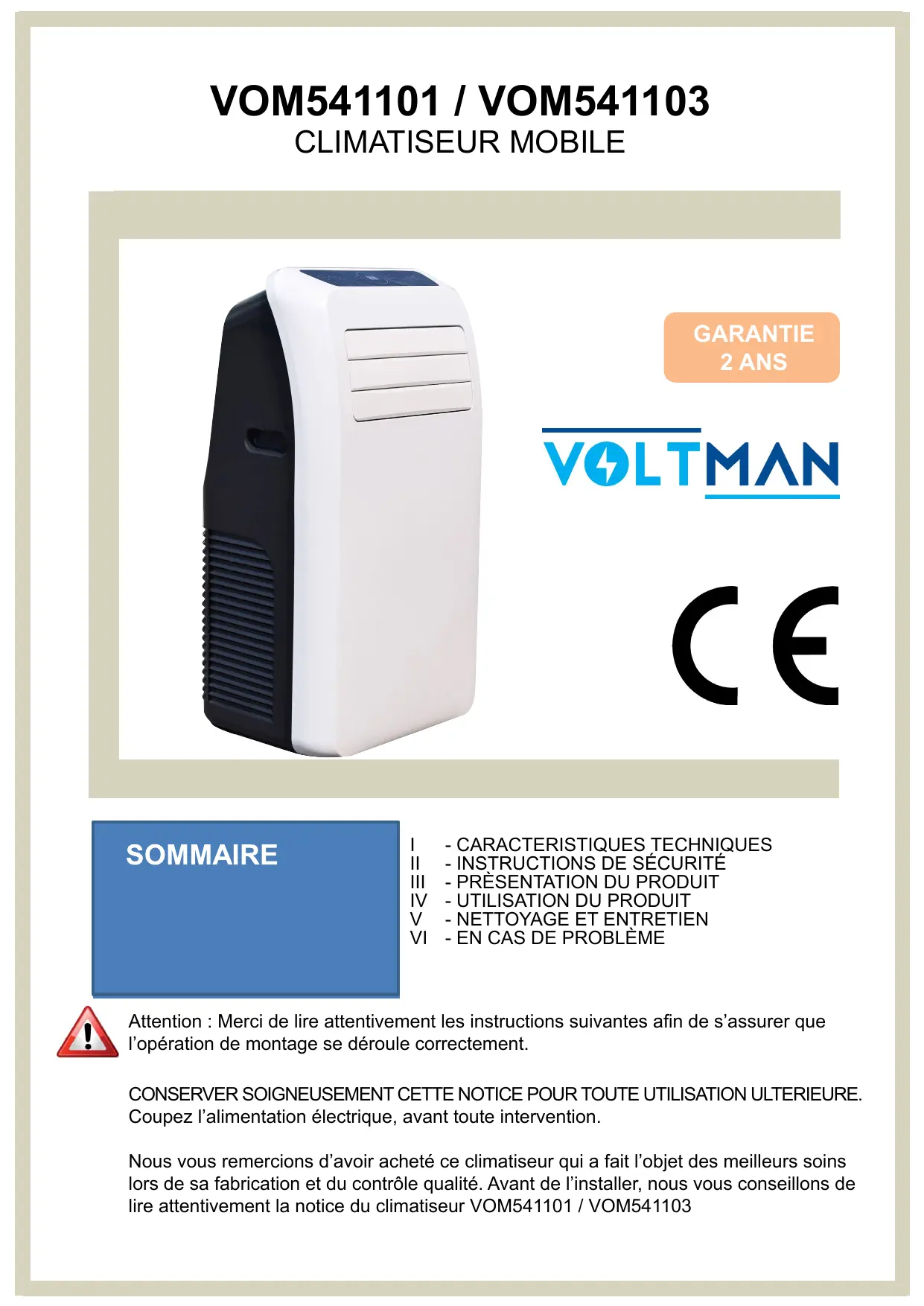 VOM541103 - Climatiseur VOLTMAN - Notice d'utilisation et mode d'emploi gratuit