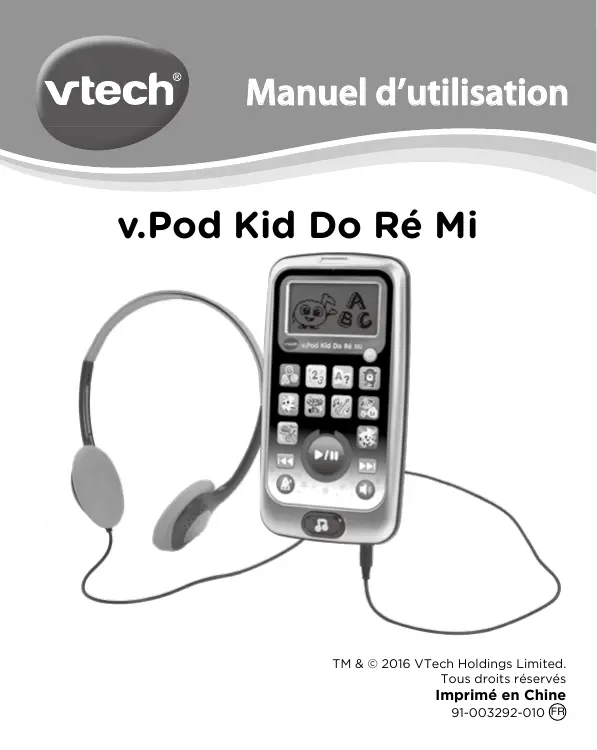 Téléchargez la notice de votre Lecteur audio portable au format PDF gratuitement ! Retrouvez votre notice V.pod Kid do, ré, mi rose - baladeur pour enfant - VTECH et reprennez votre appareil électronique en main. Sur cette page sont publiés tous les documents nécessaires à l'utilisation de votre appareil V.pod Kid do, ré, mi rose - baladeur pour enfant de la marque VTECH.