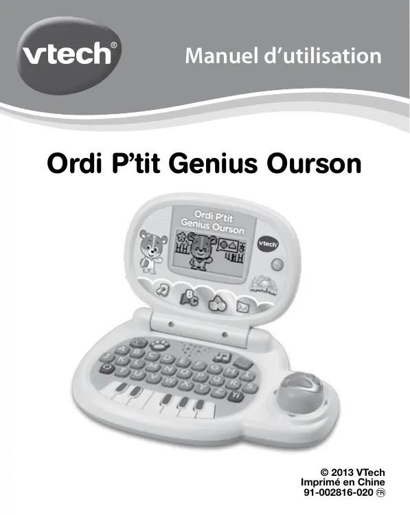 Ordi P’tit Genius Ourson de VTech® Un manuel d’utilisation Un bon de garantie Il est conseillé de conserver ce manuel d’utilisation car il comporte des informations importantes.