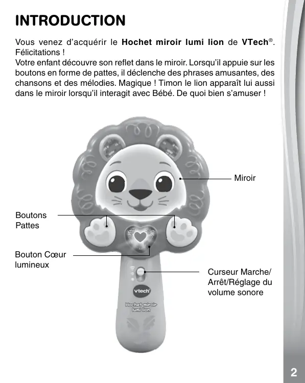 MODE D'EMPLOI Hochet miroir lumi lion VTECH