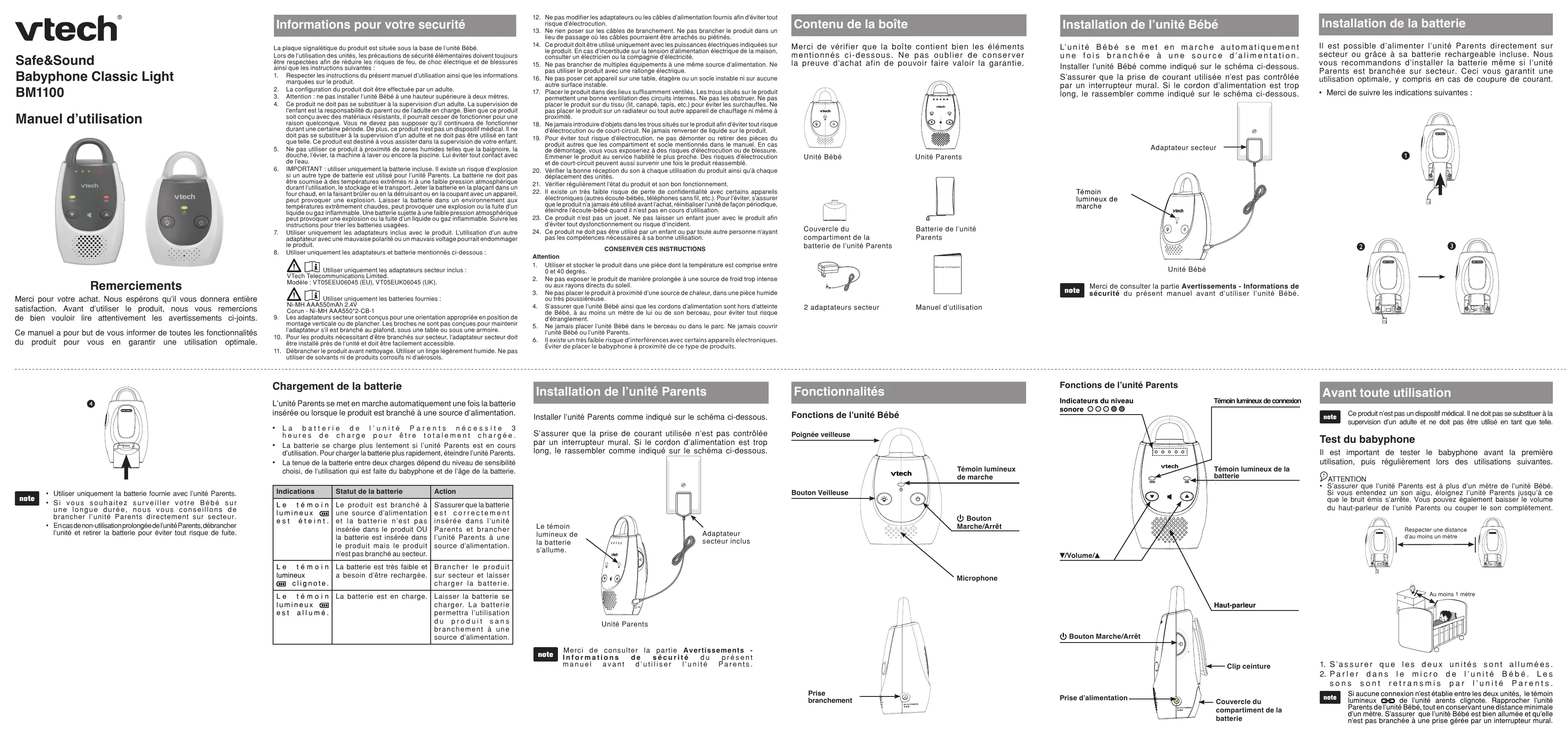 MODE D'EMPLOI Babyphone audio Classic Light BM 1100 - Ecoute-bébé audio VTECH
