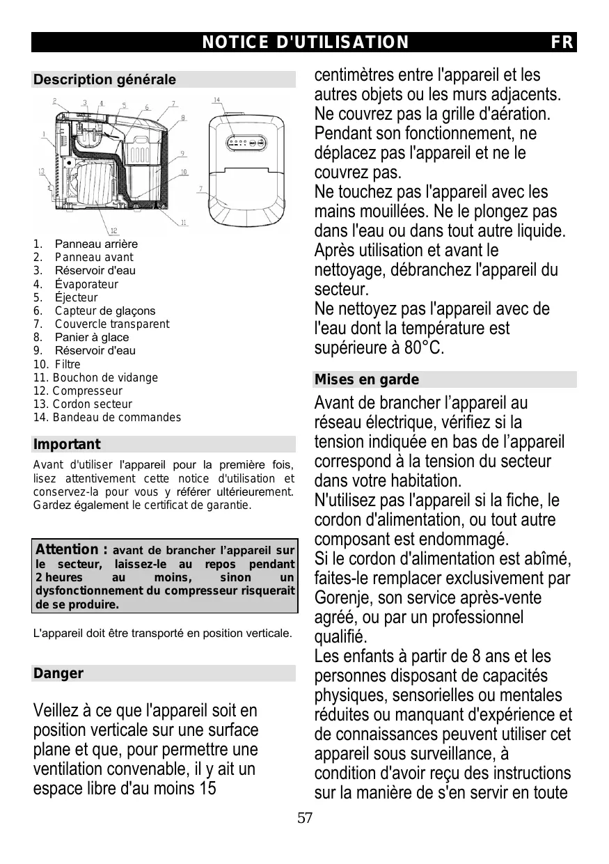 IMC 1200B - Machine à glaçons GORENJE - Notice d'utilisation et mode d'emploi gratuit