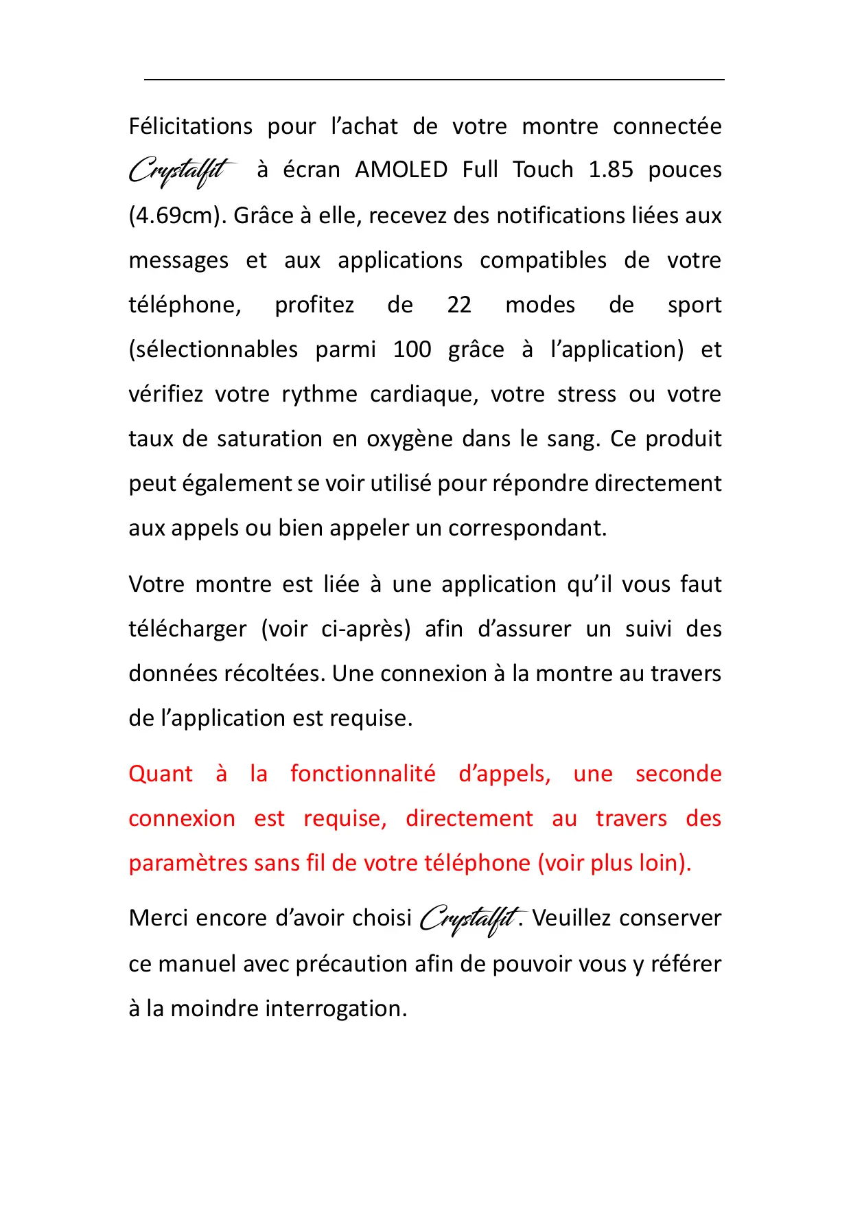 Merci encore d'avoir besoin Crystallit. Veuillez conserve ce manuel avec précaution afin de pouvoir vous y reférer à la moindre interrogation.