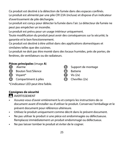 BoutonTes/Slence Bates Vote Vs Qu Testezle produit une fois par semaine pour en assure le bon fonctionnement. Ne pas peindre le prod. Ne pas utliser le produit dans une atmosphère pousséreuse ou enfumée.