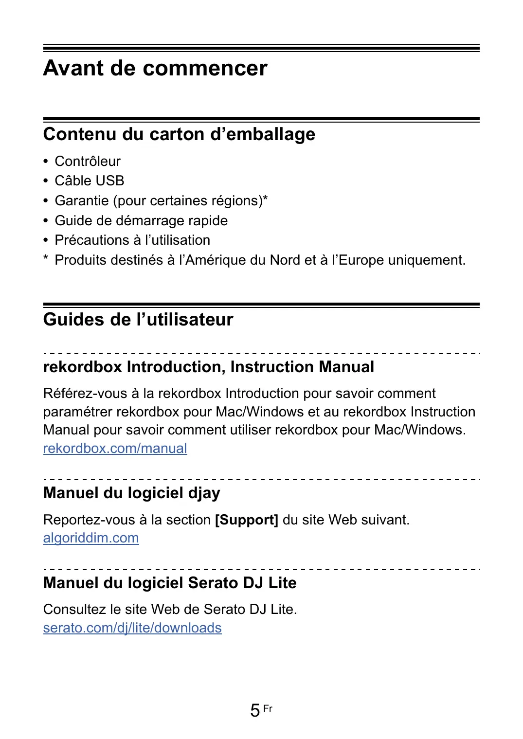 Avant de commencer Contenu du carton d'emballage Guides de l'utilisateur . Logiciel DJ... ss 6