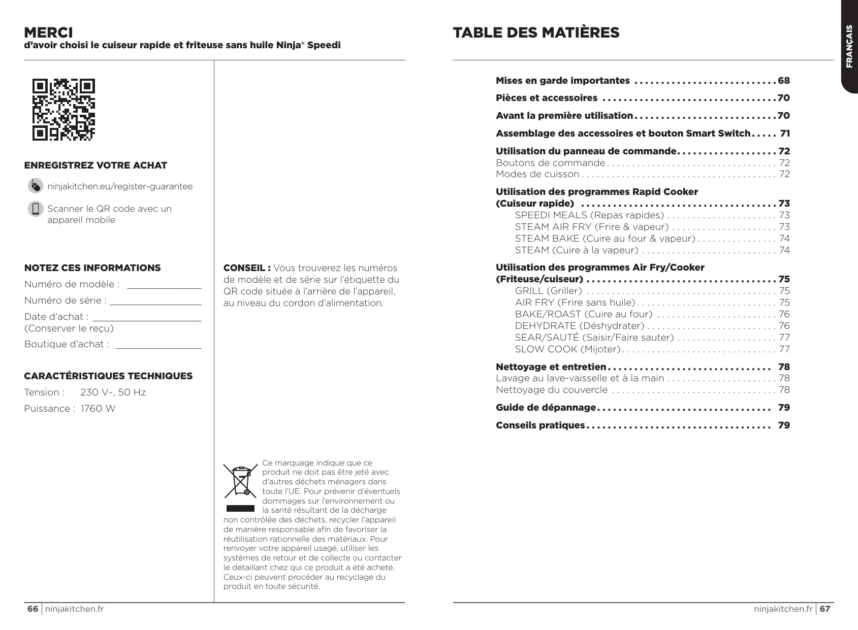 MODE D'EMPLOI ON400EU Speedi Rapid Cooker & Air fryer NINJA