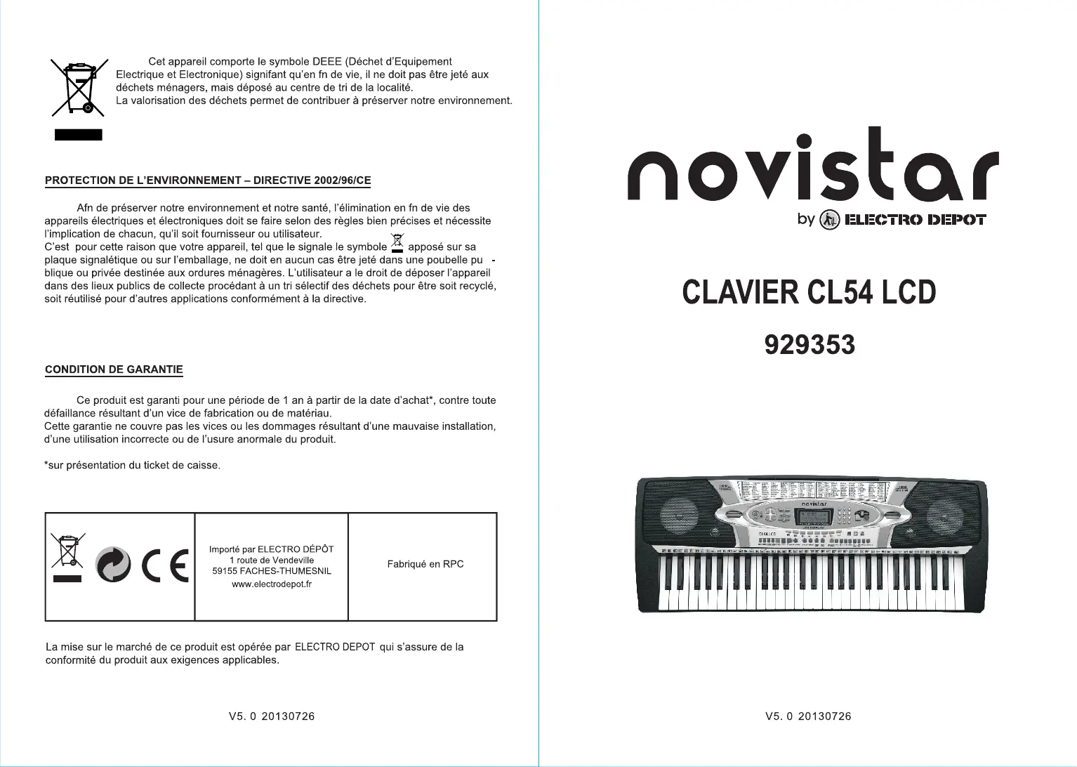 Téléchargez la notice de votre Clavier au format PDF gratuitement ! Retrouvez votre notice CL54 LCD 929353 - NOVISTAR et reprennez votre appareil électronique en main. Sur cette page sont publiés tous les documents nécessaires à l'utilisation de votre appareil CL54 LCD 929353 de la marque NOVISTAR.