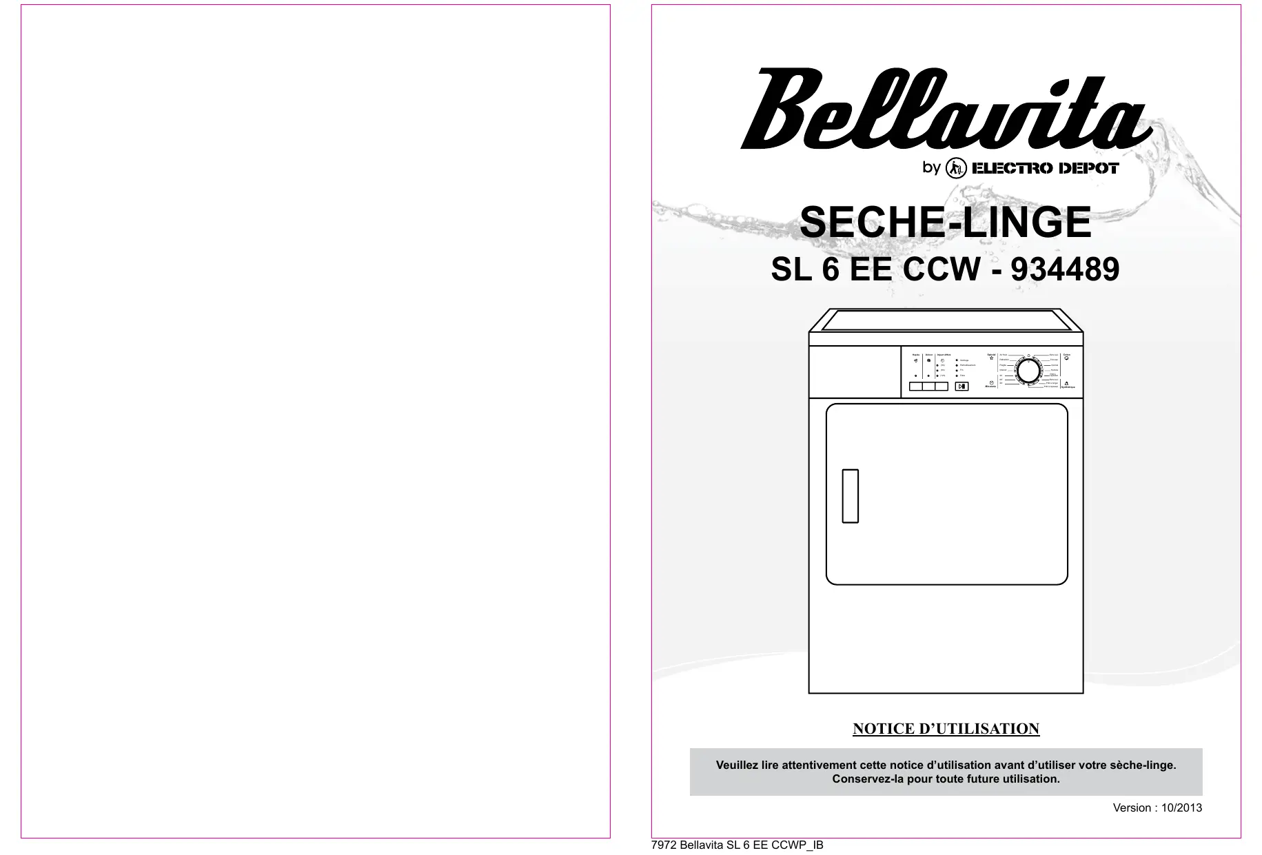 NOTICE D'UTILISATION Veuillez lire attentivement cette notice d'utilisation avant d'utiliser votre sèche-linge. Conservez-la pour toute future utilisation. Version : 10/2013 7972 Bellavita SL 6 EE CCWP_IB