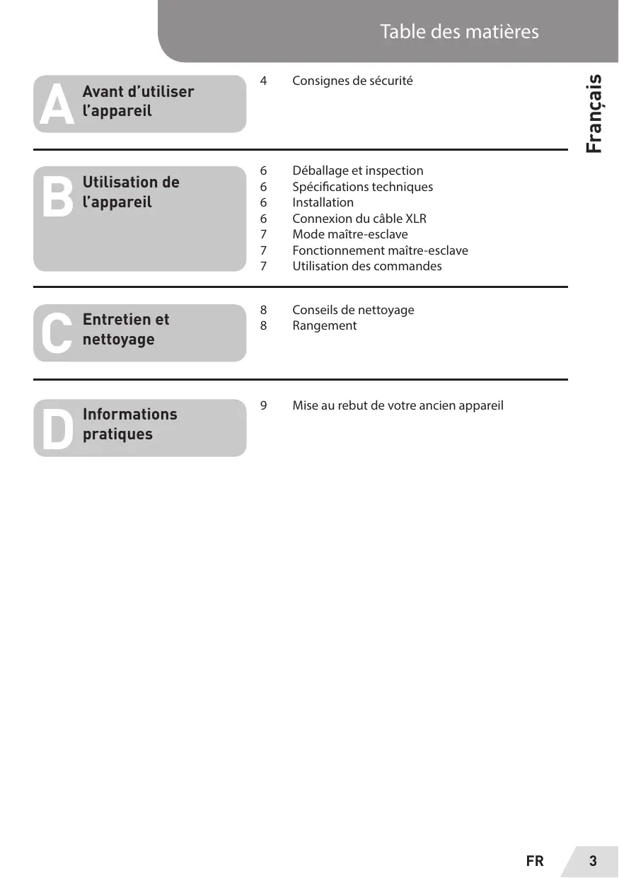 + Avant son installation et son utilisation, vérifiez si votre appareil nest pas endommagé et s'il est complet. En cas de problème, retournez-le à votre revendeur ou au service technique.