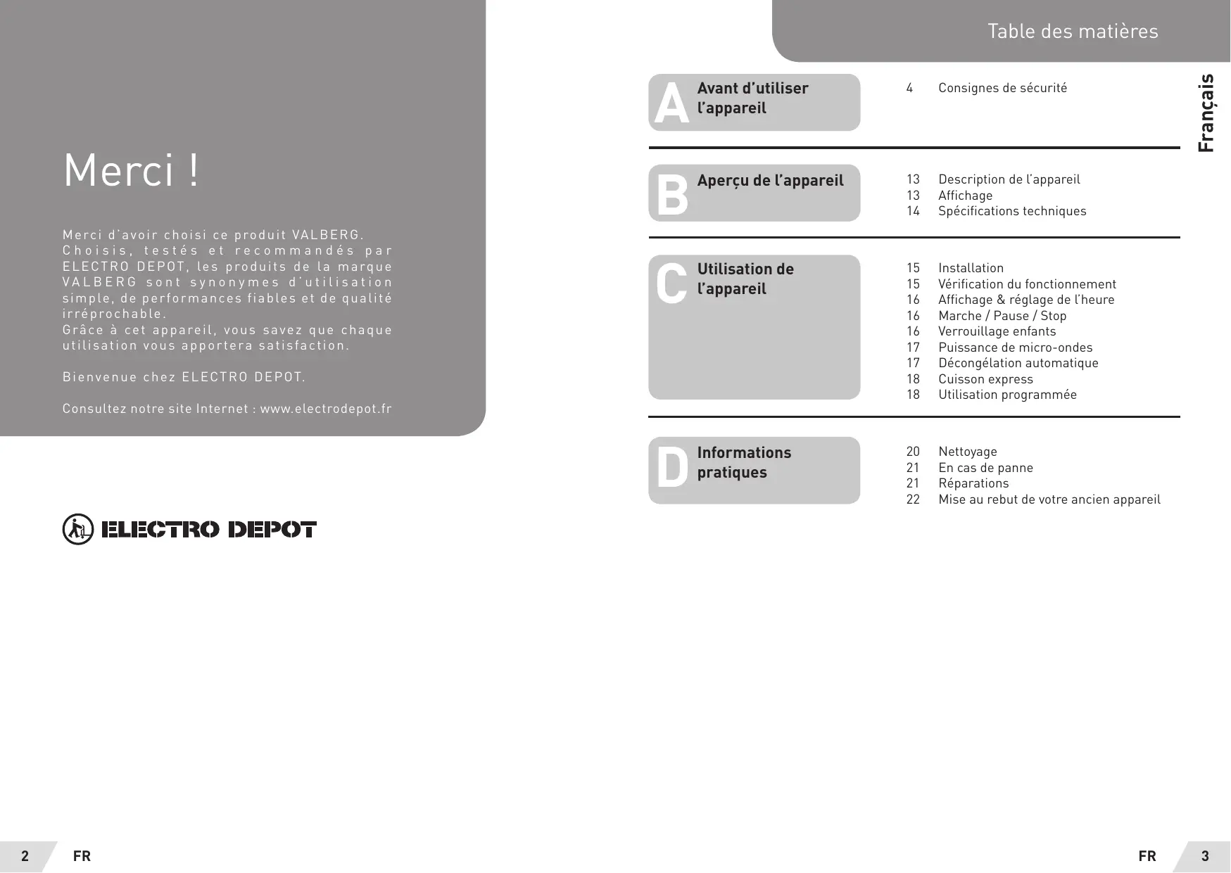 Retrouvez gratuitement la notice de l'appareil MO19EL VALBERG au format PDF.