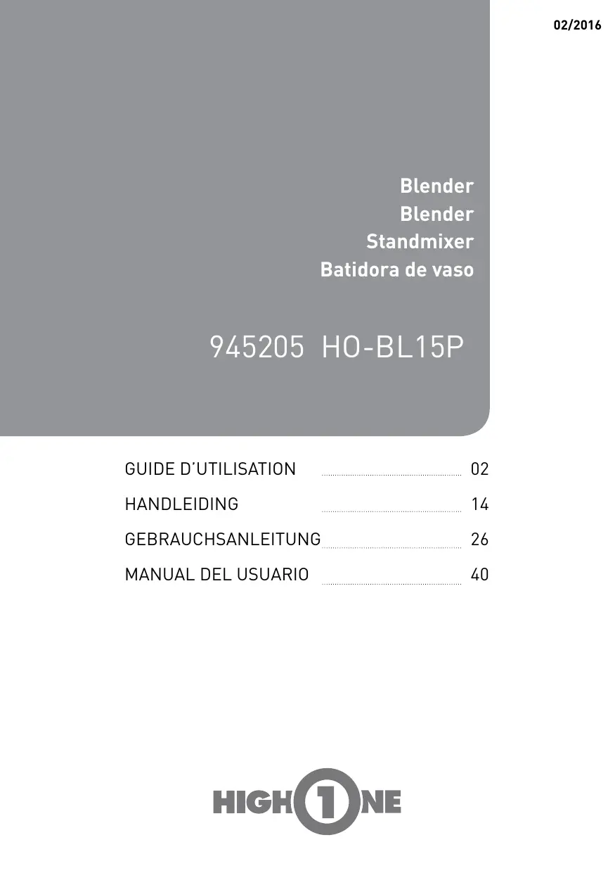 HO-BL15P - Blender HIGH ONE - Notice d'utilisation et mode d'emploi gratuit