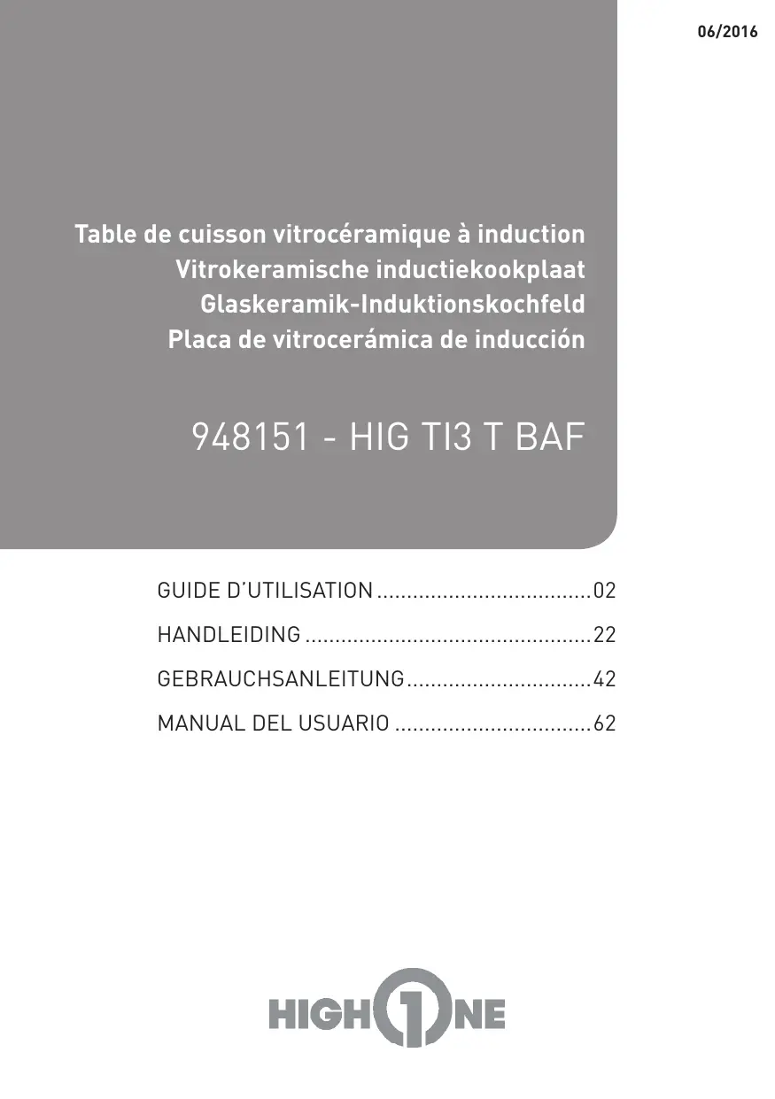 HIG TI 3 TB AF - Plaque de cuisson induction HIGH ONE - Notice d'utilisation et mode d'emploi gratuit