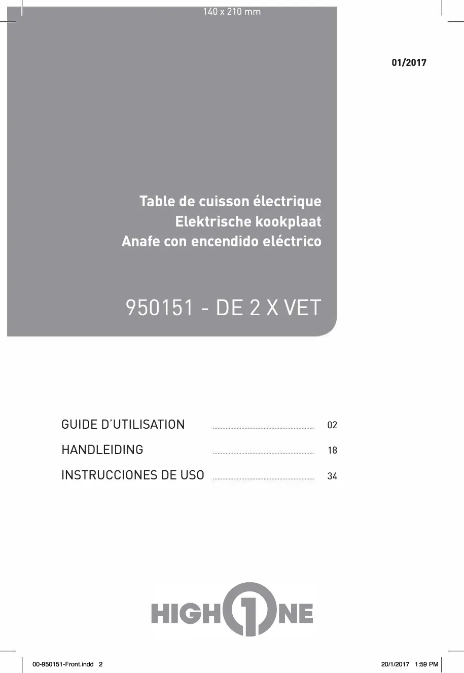 DE 2 X VET - Table de cuisson electrique HIGH ONE - Notice d'utilisation et mode d'emploi gratuit