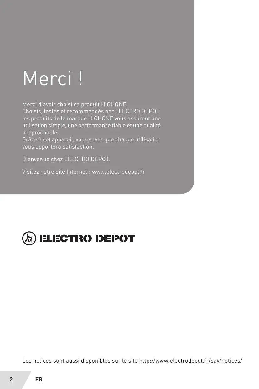 Les notices sont aussi disponibles sur le site http://www.electrodepot.fr/sav/ notices/