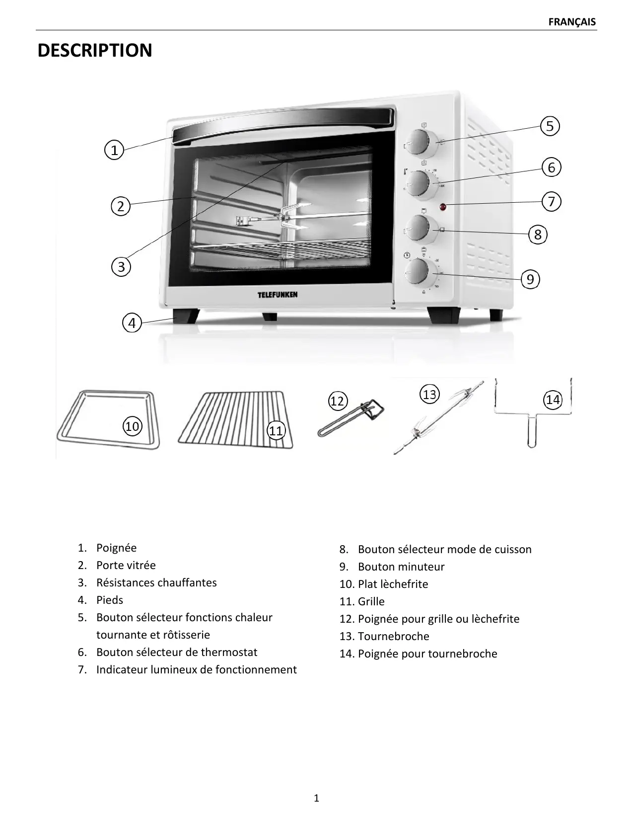 MO21-SFE - Four TELEFUNKEN - Notice d'utilisation et mode d'emploi gratuit