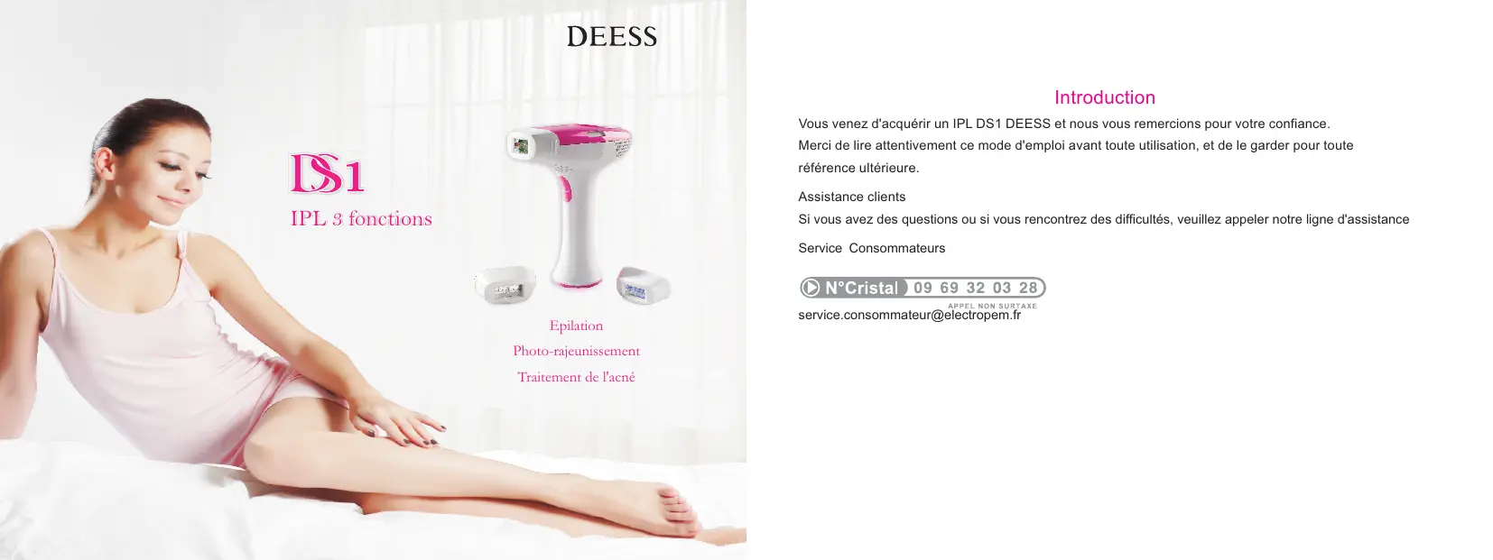 Vou venez d'acquérir un IPL DS1 DEESS et nous vous remercions pour votre confiance.