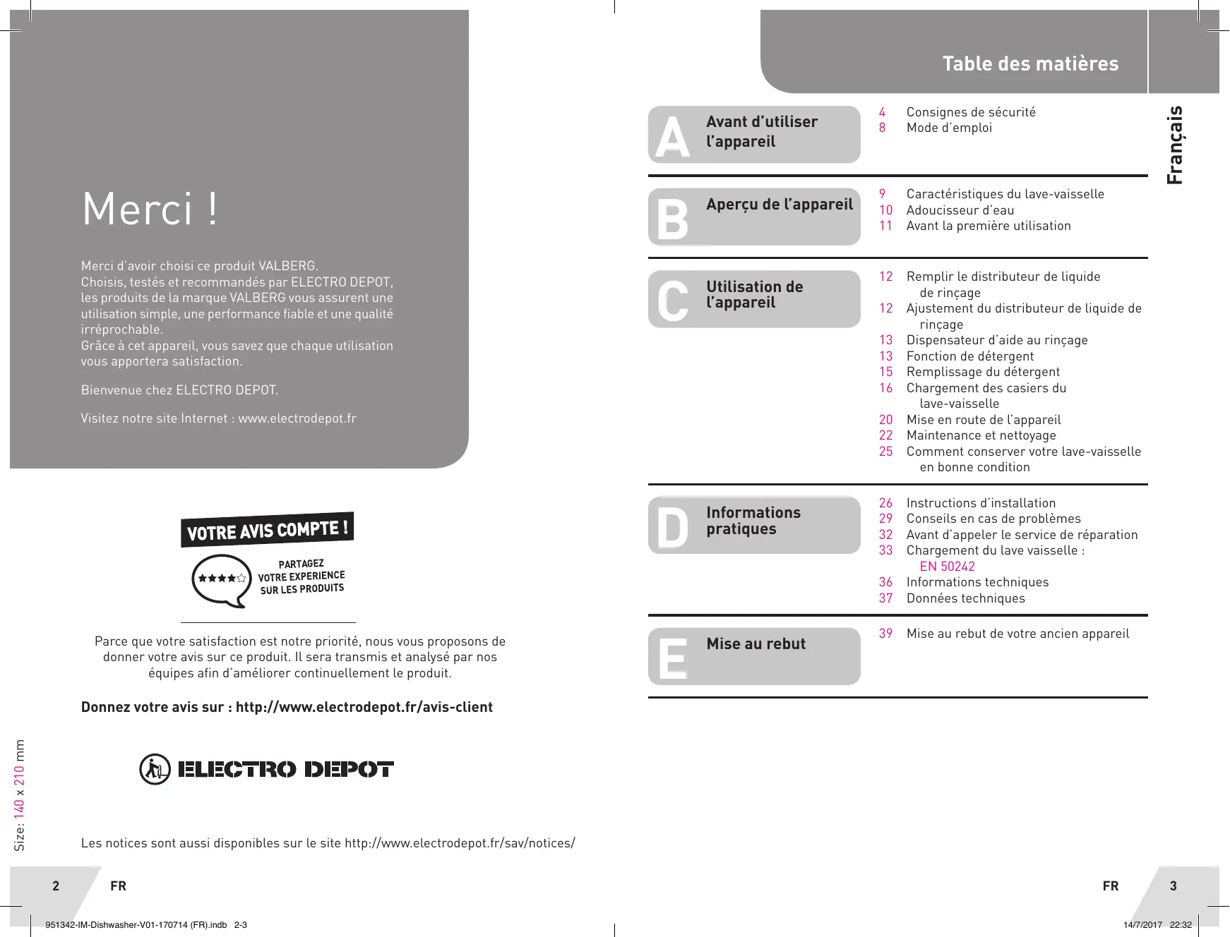 Size: 140 x 210 mm Merci | Merci d'avoir choisi ce produit VALBERG. Choisis, testés et recommandés par ELECTRO DEPOT, les produits de La marque VALBERG vous assurent une utilisation simple, une performance fiable et une qualité irréprochable. Grâce à cet appareil, vous savez que chaque utilisation vous apportera satisfaction Bienvenue chez ELECTRO DEPOT. Visitez notre site Internet : www.electrodepot.fr