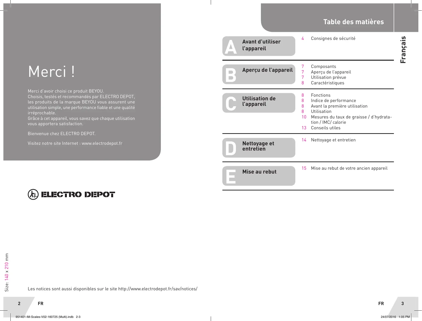 Retrouvez gratuitement la notice de l'appareil EI3 BE YOU au format PDF.