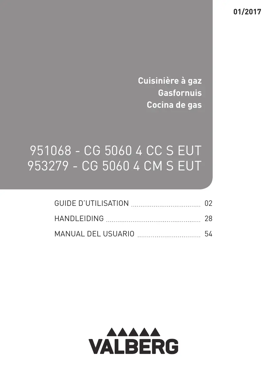 CG 5060 4CM S EUT - Cuisiniere gaz VALBERG - Notice d'utilisation et mode d'emploi gratuit