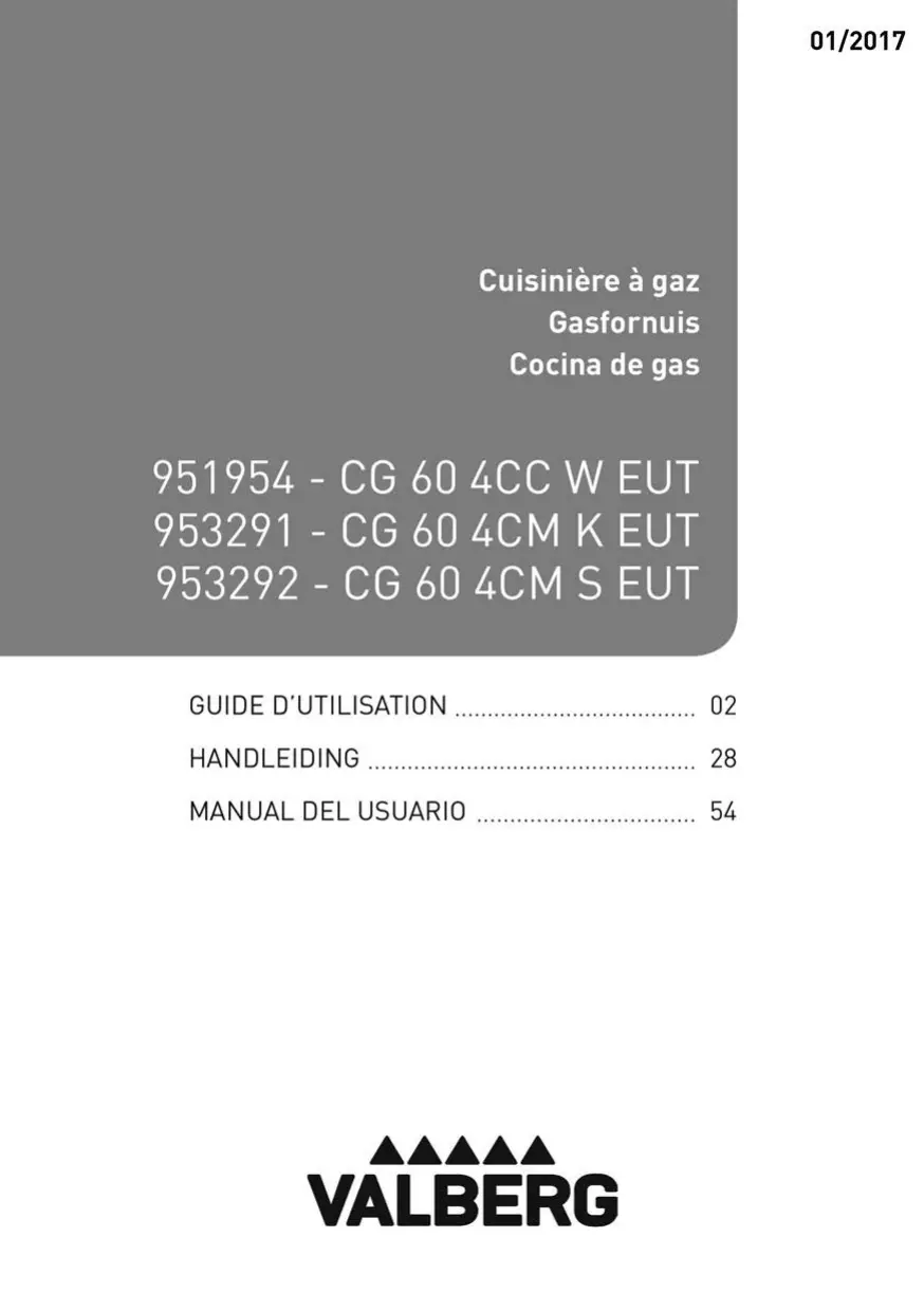 CG 60 4CM K EUT - Cuisiniere gaz VALBERG - Notice d'utilisation et mode d'emploi gratuit