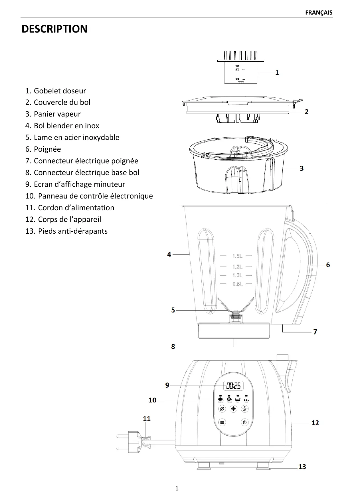 DESCRIPTION 1 MISE EN SERVICE ET UTILISATION 2 Avant toute première utilisation 2 Montage et démontage de l'ordinateur 3 Descriptif du panneau de contrôle et des programmes automatiques 4 Utiliser votre appareil 6 ANOMALIES DE FONCTIONNEMENT 8 NETTOYAGE ET ENTRETIEN 9 INFORMATION TECHNIQUE 10