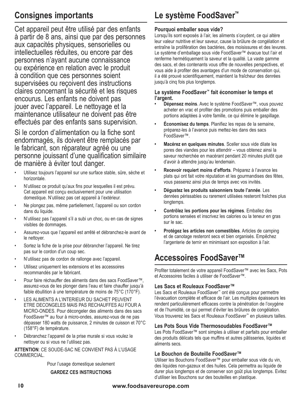 Pour commander des sacs, des rouleaux et des accessoires FoodSaver"W, rendez-vous sur www.foodsavereurope.com et sélectionnez votre région