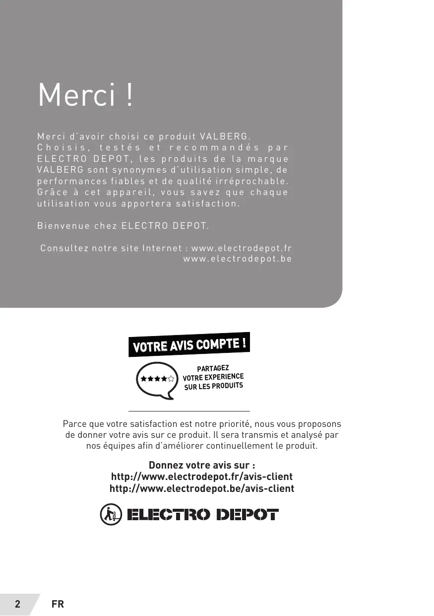 Merci d'avoir choisi ce produit VALBERG. Choisis, testés et recommandés par