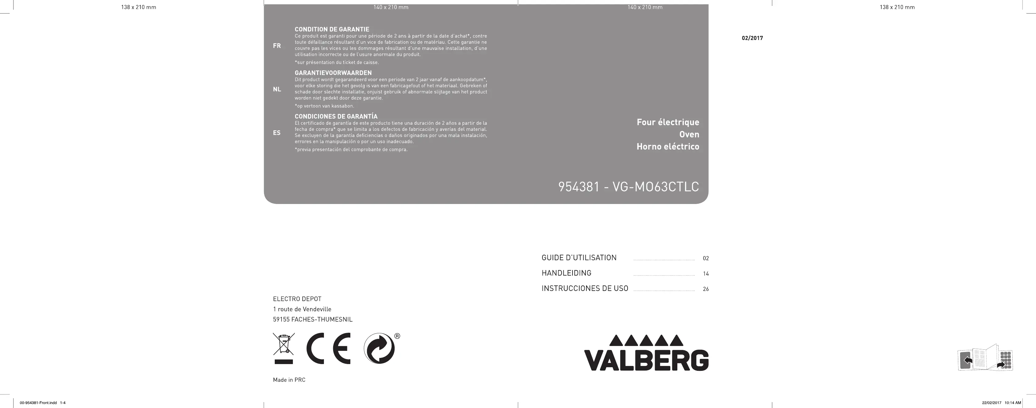 Retrouvez gratuitement la notice de l'appareil VG-MO63CTLC VALBERG au format PDF.