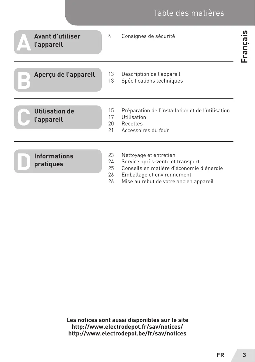 ATTENTION Votre appareil de cuisson est concu uniquement pour la cuisson des aliments et il est prévu uniquement pour un usage domestique. IL ne doit jamais