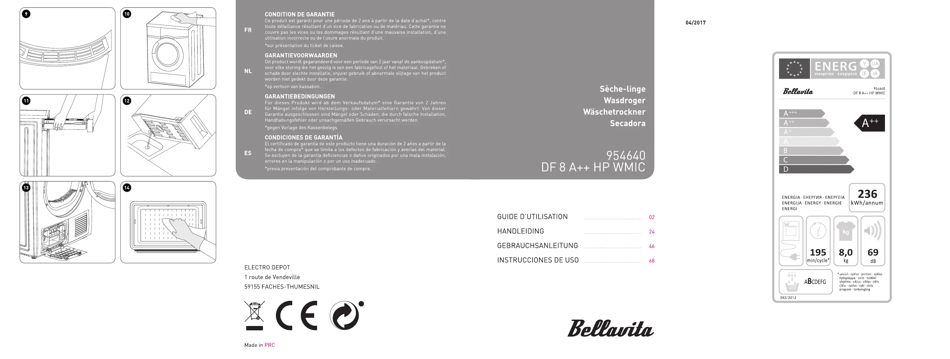 DF 8 A++ HP WMIC - Seche linge BELLAVITA - Notice d'utilisation et mode d'emploi gratuit