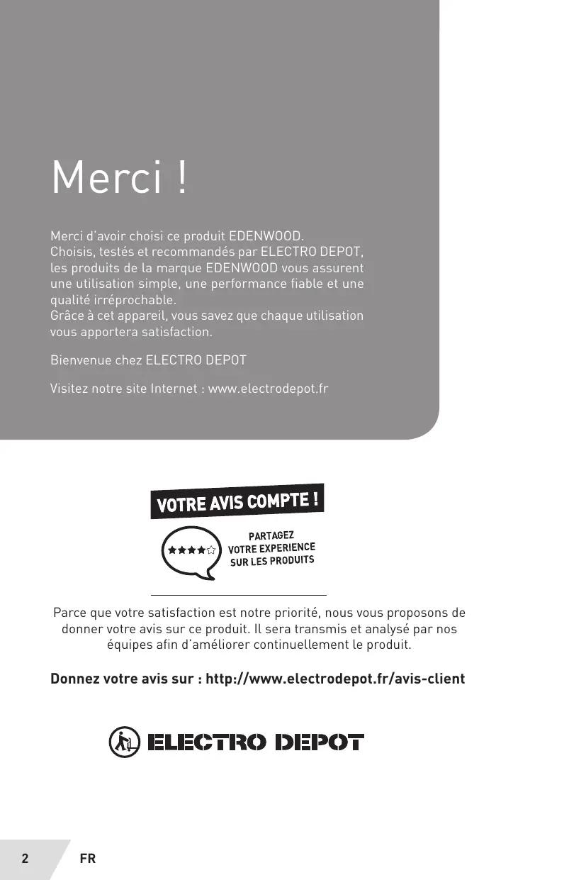 Les notices sont aussi disponibles sur le site http://www.electrodepot.fr/sav/notices/