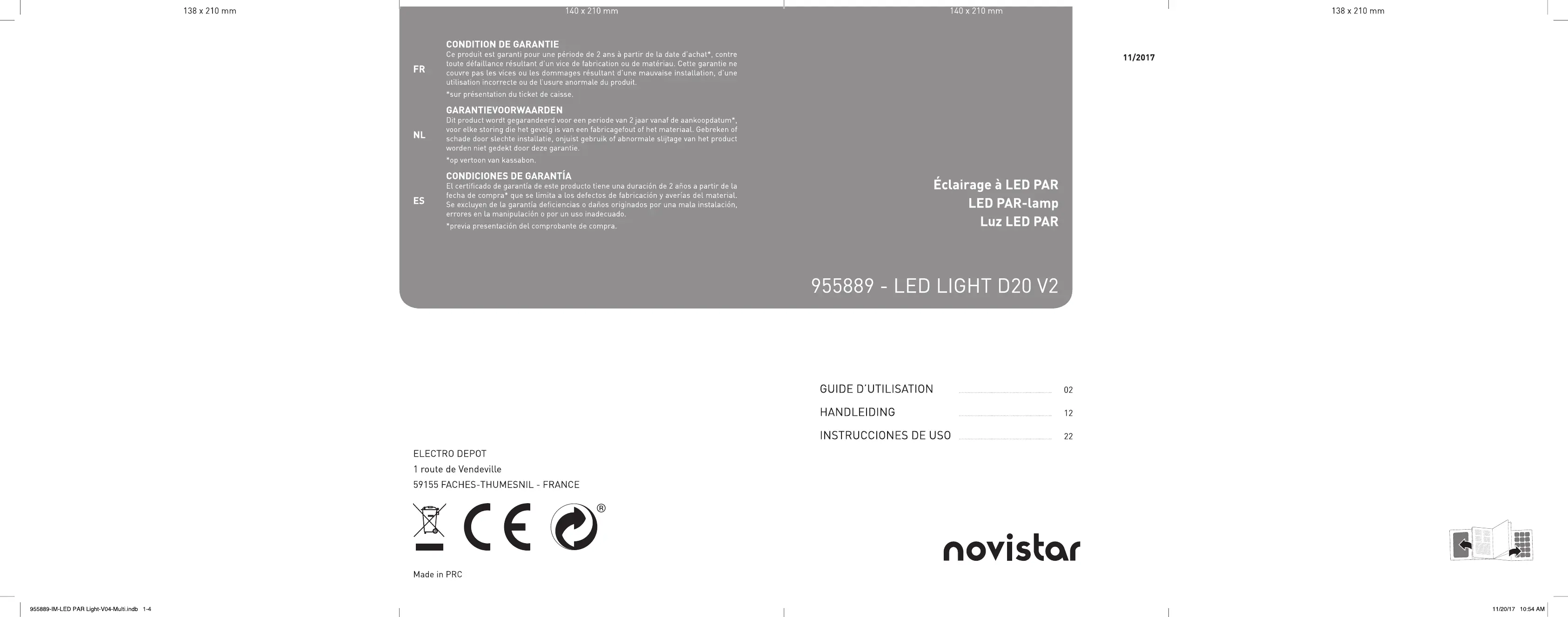Retrouvez gratuitement la notice de l'appareil LED LIGHT D20 V2 NOVISTAR au format PDF.
