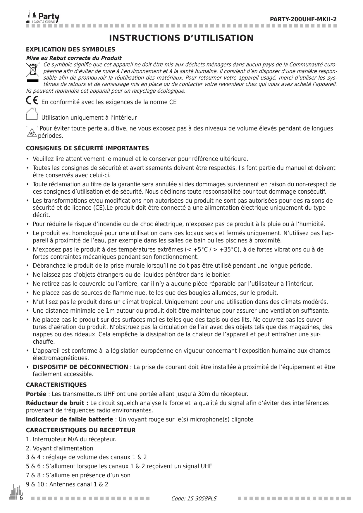 MODE D'EMPLOI PARTY-200UHF PARTY LIGHT&SOUND