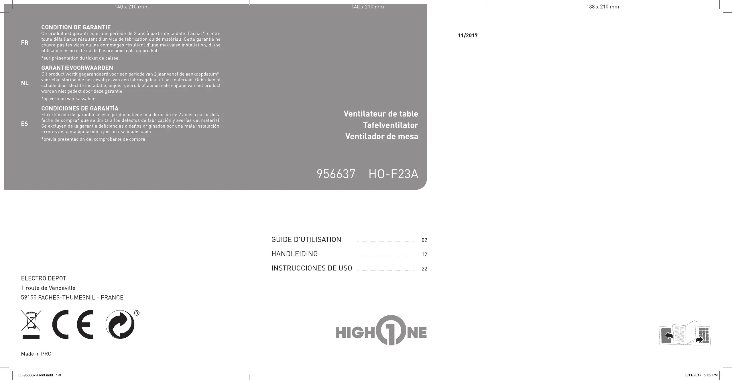 HO-F23A - Ventilateur de table HIGH ONE - Notice d'utilisation et mode d'emploi gratuit