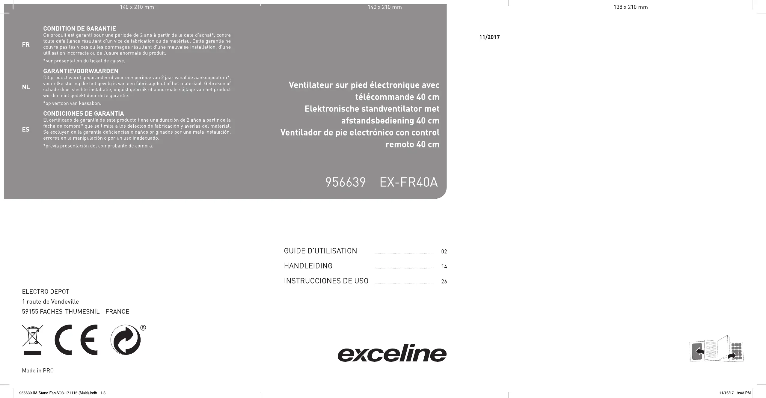 Parce que votre satisfaction est notre priorité, nous vous proposons de donner votre avis sur ce produit. |L sera transmis et analysé par nos équipes afin d'améliorer continuellement Le produit. Donnez votre avis sur : http://www.electrodepot.fr/avis-client TRO DEPOT Size: 140 x 210 mm 2 FR 286689-IM-Stand Fan-V03-171115 (Mult).indb_ 2 11A8A7 9:08 PM
