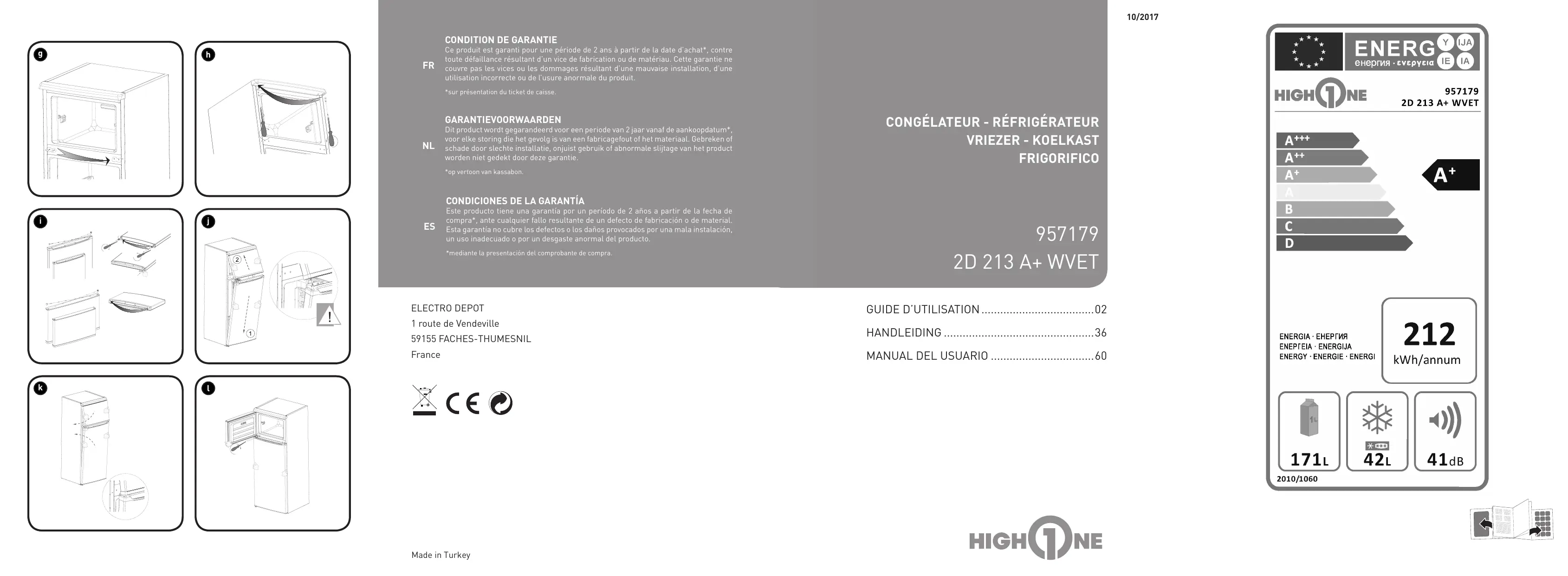 HIGHONE. Hi u ne Zz De selectie en de testen van de toestellen van Overzicht van het 44 Omschrijving van het toestel HIGHONE gebeuren volledig onder controle en toestel 45 Productfiche supervisie van ELECTRO DEPOT. We staan garant 46 Installatie en bediening van uw koelkast voor de kwaliteit van de toestellen van HIGHONE, 46 Voor u uw koelkast in gebruik neemt die uitmunten in hun eenvoudig gebruik, hun 47. Wijziging van de openingsrichting van de deur betrouwbare werking en hun onberispelijke kwaliteit. ELECTRO DEPOT beveelt de HIGHONE toestellen aan en Gebruik van het n pstelling Thermasteat - 1 © toestel ccessories is ervan dat u uiterst tevreden zal zijn bij elk 1. Haal de stekker uit het à