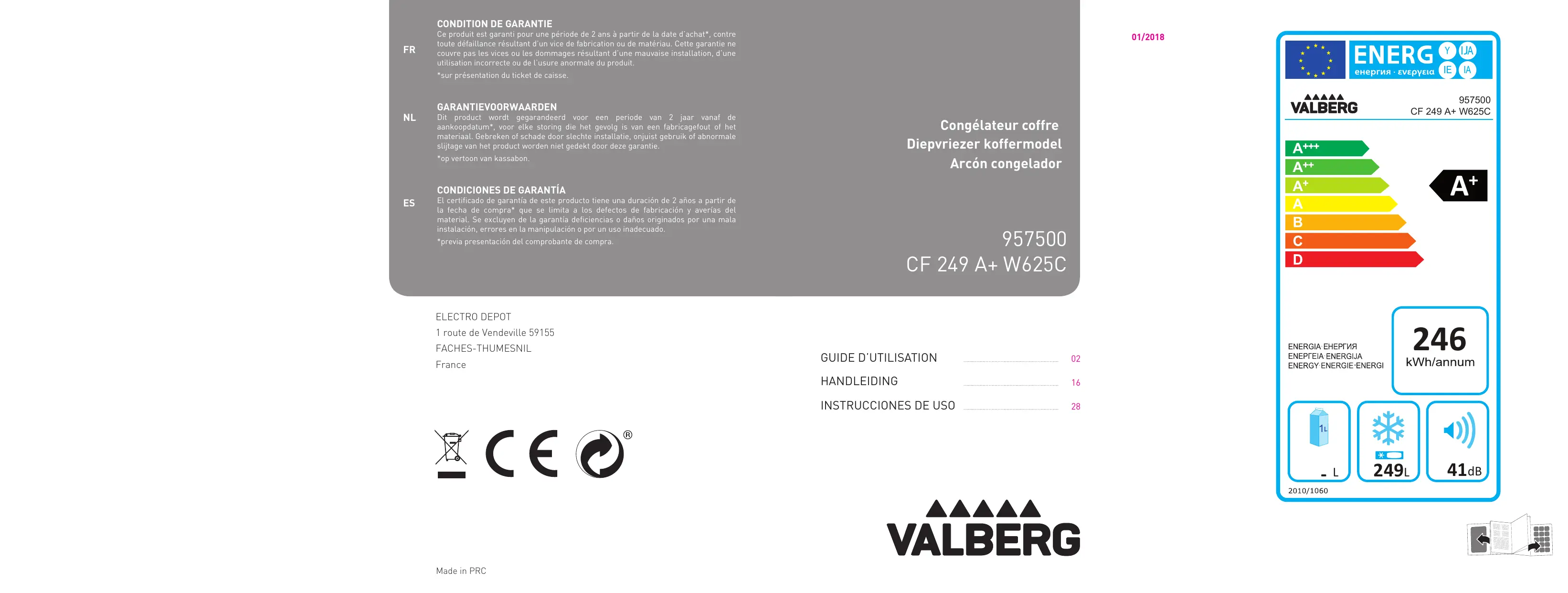CF 249 A+ W625C - Congélateur coffre VALBERG - Notice d'utilisation et mode d'emploi gratuit