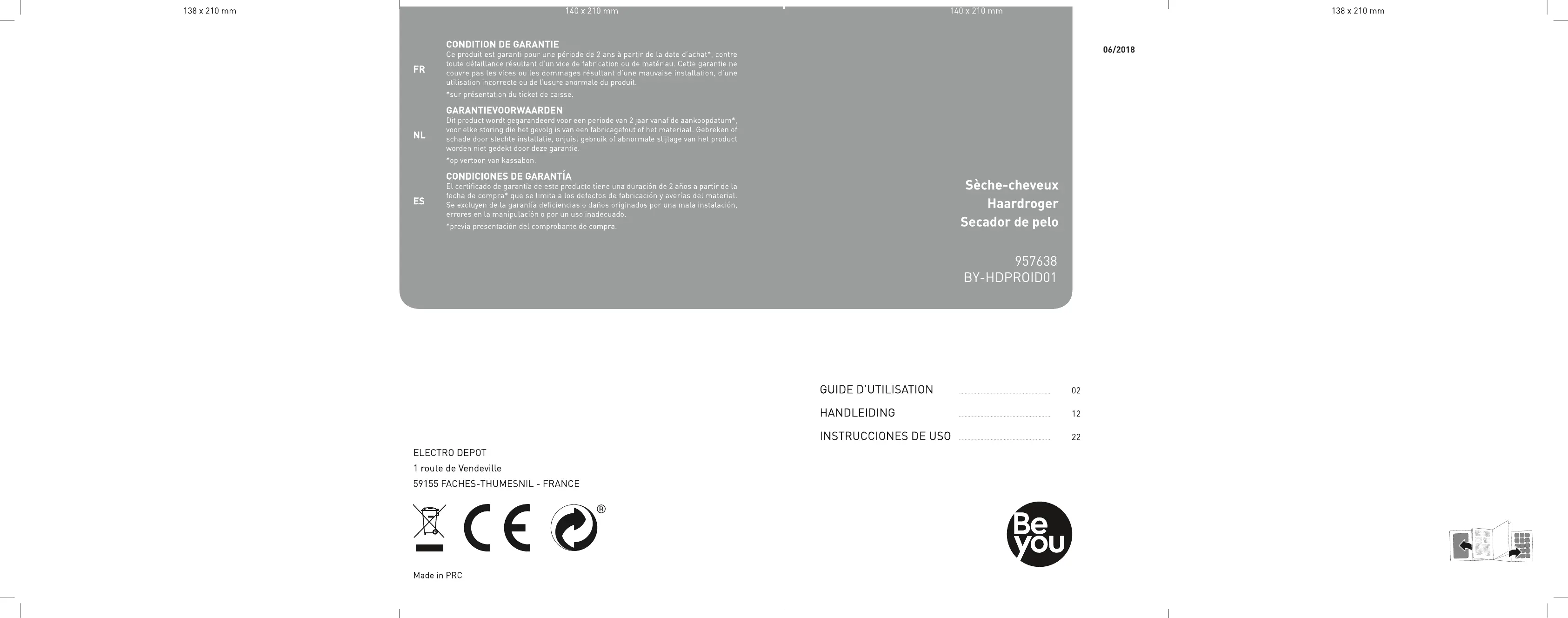 BY-HDPROID01 - Sèche cheveux BE YOU - Notice d'utilisation et mode d'emploi gratuit