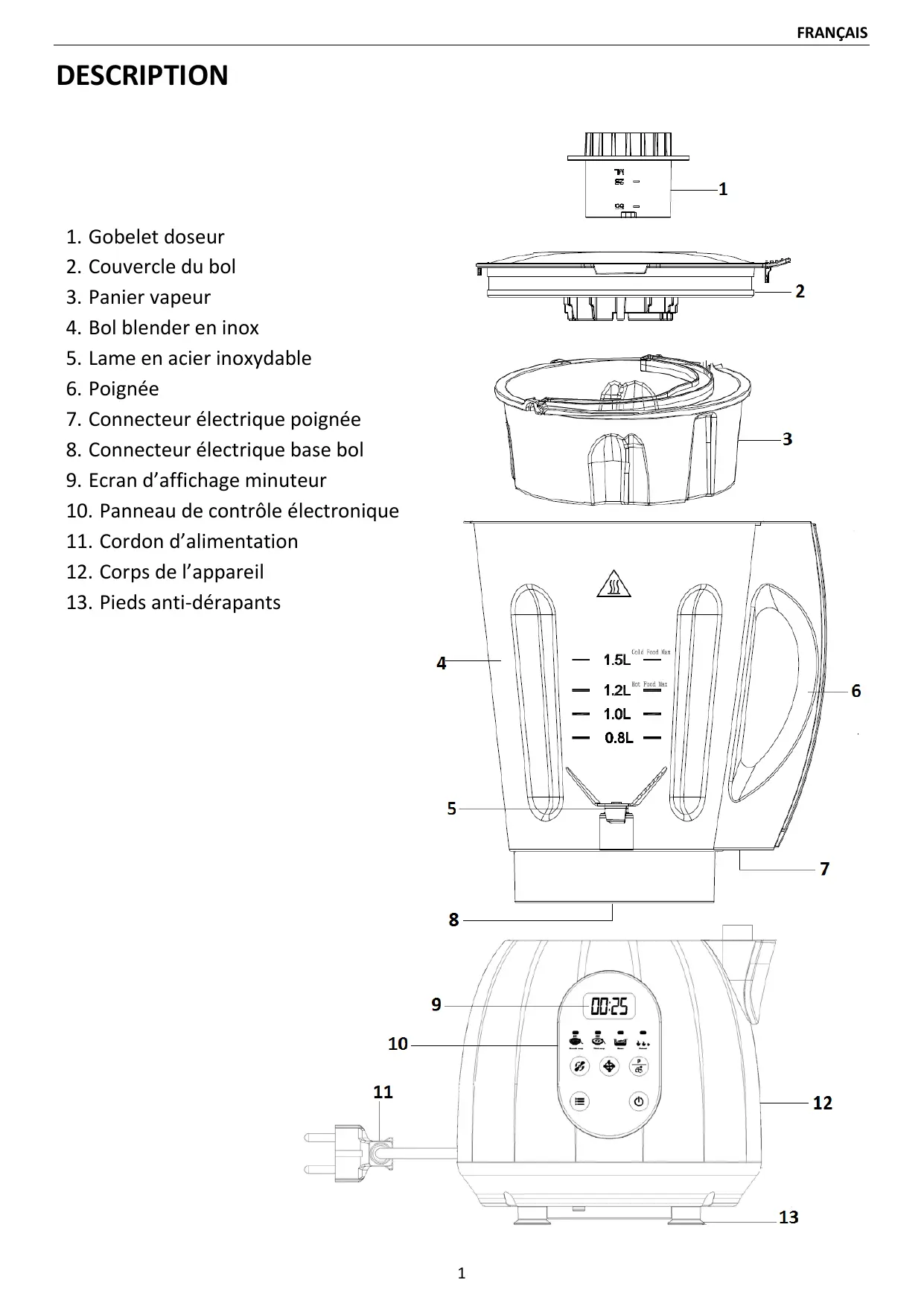 | Capacité max. pour préparation froide | 1.5L MAX. |