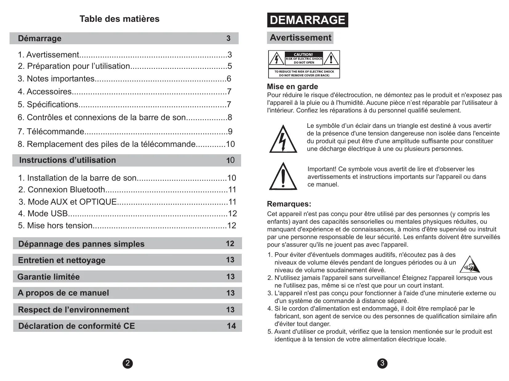 DEMARRAGE Avertissement