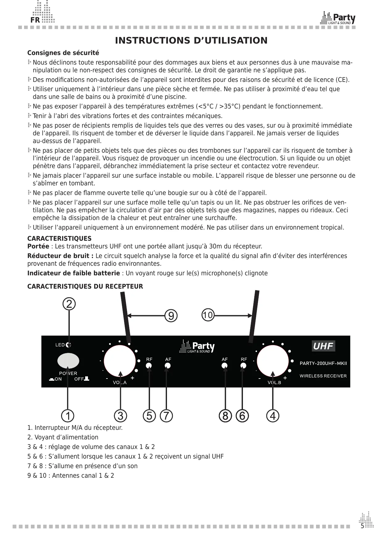 MODE D'EMPLOI PARTY-200UHF V2 PARTY LIGHT&SOUND